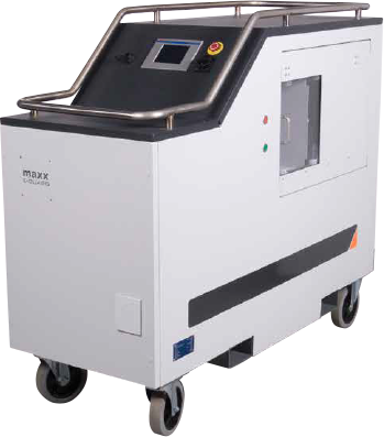The machine can be moved via its wheels around Datacenters with ease and also has fork lift truck guides on the side for moving from facility to facility.